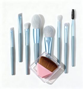 The other brushes cover eyes, cheeks, and details to keep makeup neat and balanced.