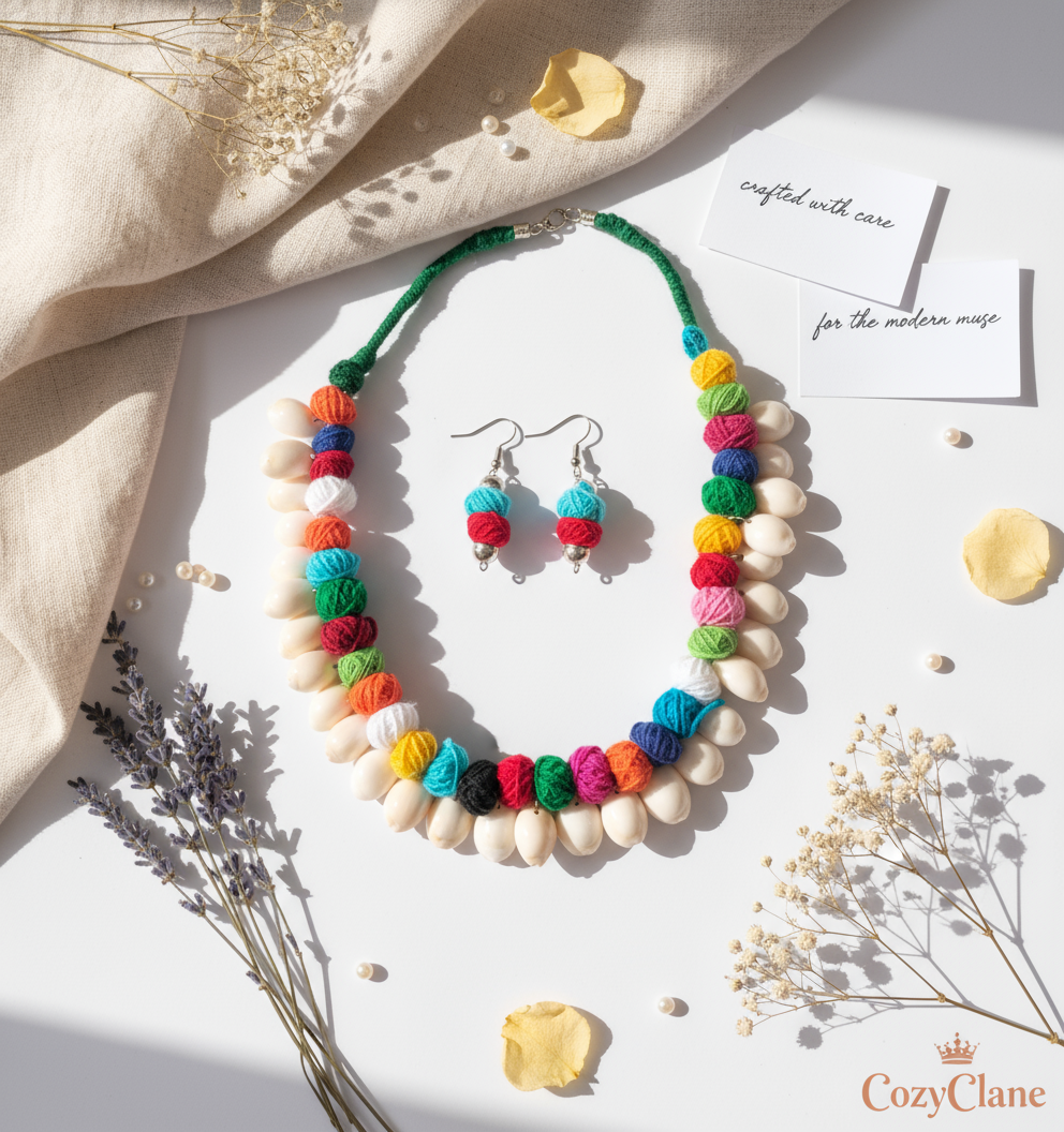 The Carnival Dreams Necklace Set is not just jewellery. It is a reminder to enjoy color, creativity, and joy every day. At CozyClane, we make pieces that celebrate who you are. Each one feels thoughtful, personal, and made with love. When you wear this necklace, you carry a bit of happiness with you. It makes your look bright, your mood calm, and your heart full of life.