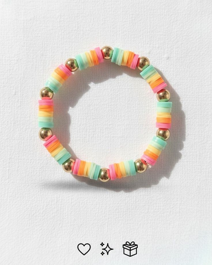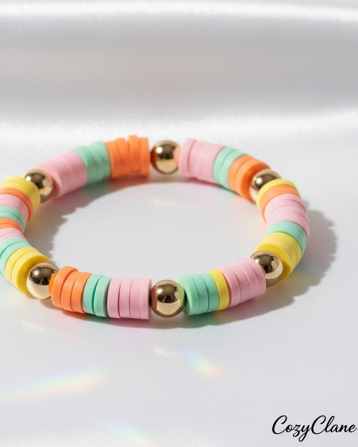 There is something magical about wearing a rainbow on your wrist. The Rainbow Joy Bracelet Collection embraces this feeling through soft, colorful heishi beads made from smooth clay. Because each bead is placed in a pastel flow from mint to coral and pink to yellow, it creates a lovely shade mix that shines beautifully.
